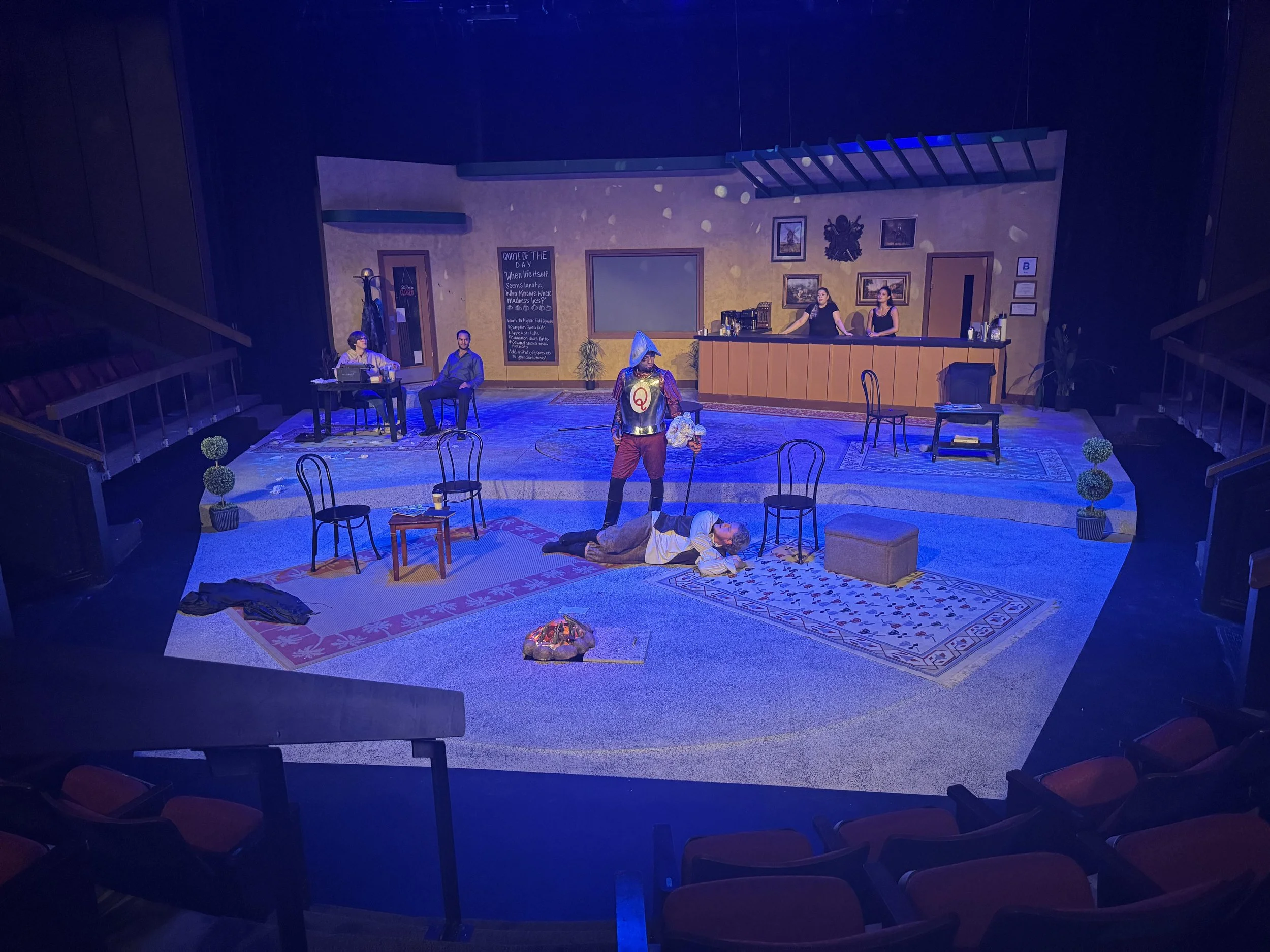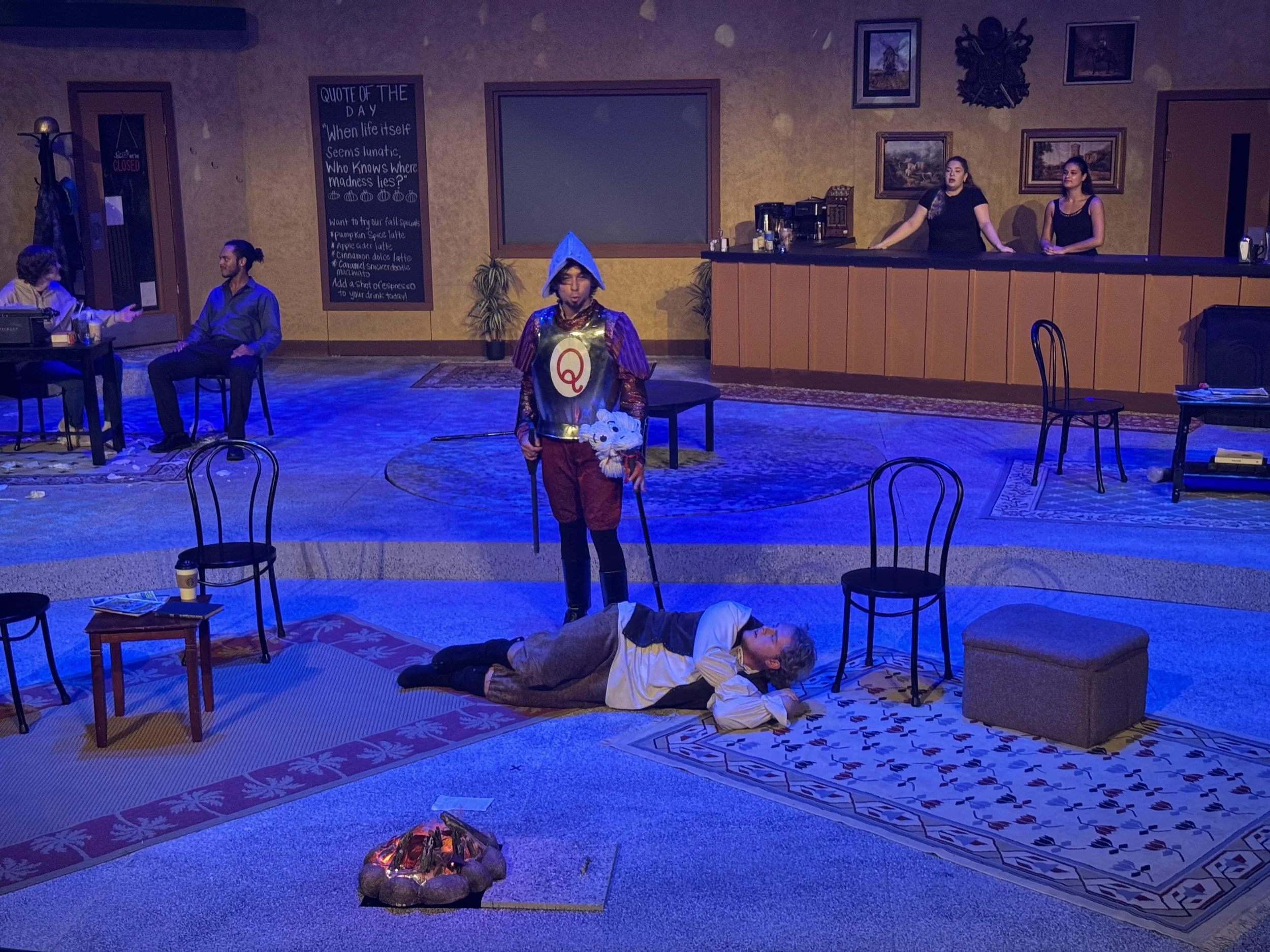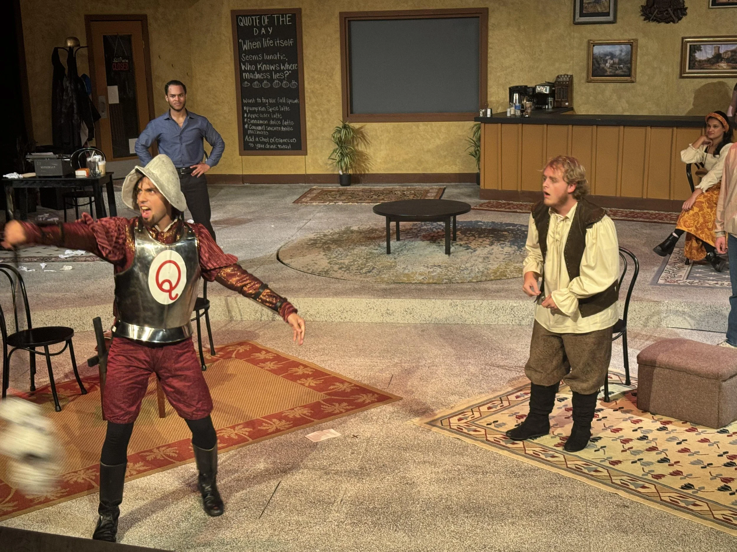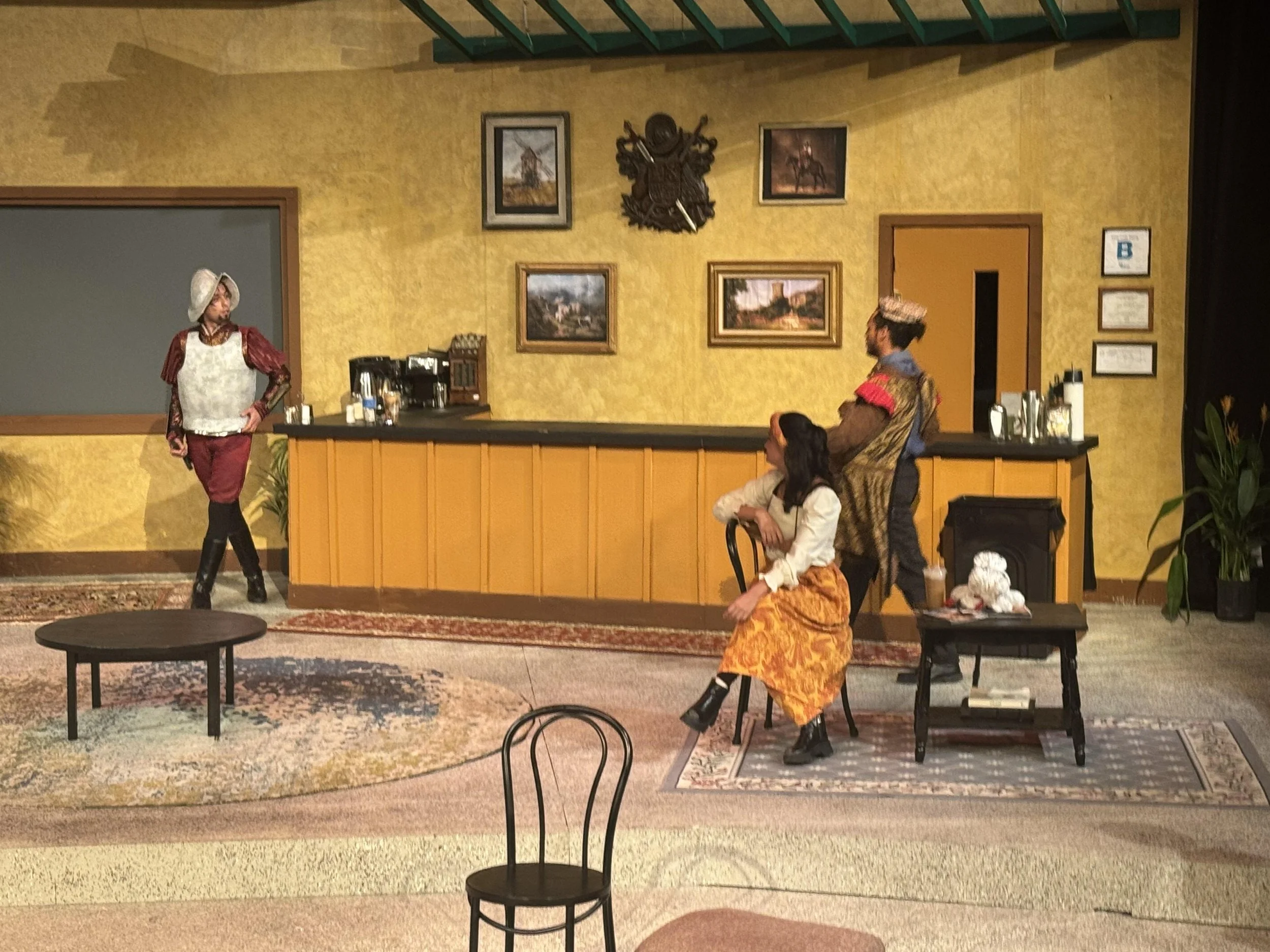 The show was set in both 1600s Spain and a modern day coffee shop, so the general idea for my design was to make the set appear like a coffee shop, but hidden fantastical elements would pop up occasionally to bring a whimsical and dream-like feeling to the audience.